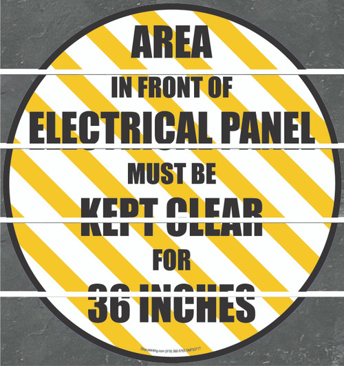Our floor sign reminds employees of OSHA electrical safety regulations and rules (or even messages above and beyond what OSHA requires) via a clear and concise visual message. Whether you are using Lean manufacturing practices, looking for 5S visual supplies or hoping to increase your bottom line by prioritizing safety and organization in your work place, this sign is a solution. Make sure employees know to keep electrical panel clear with a boundary of at least 36".