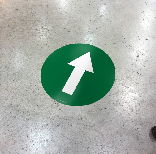 Our green floor sign with a large white arrow is designed to withstand heavy traffic, even in a busy warehouse. Available in 4 materials and 2 sizes. Choose the size and material that best suits your needs. We have permanent and removable floor signs. Keep traffic flowing smoothly with a green directional arrow floor sign.