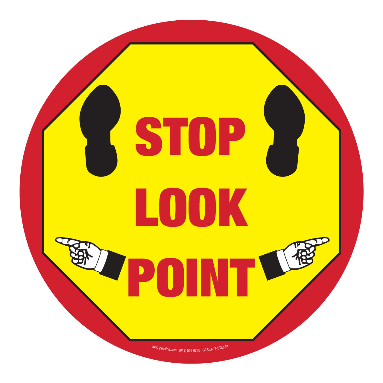 Our Stop Look Point floor sign clearly communicates where people should stop and check their surroundings via a vibrant and concise visual message. Visual cues are a big part of what makes Lean and 5S methods work, so make sure you've got the best floor tape and signs in your work area. Labeling where pedestrians and workers are located is very important for the wellbeing of your staff, and compliance with safety requirements.