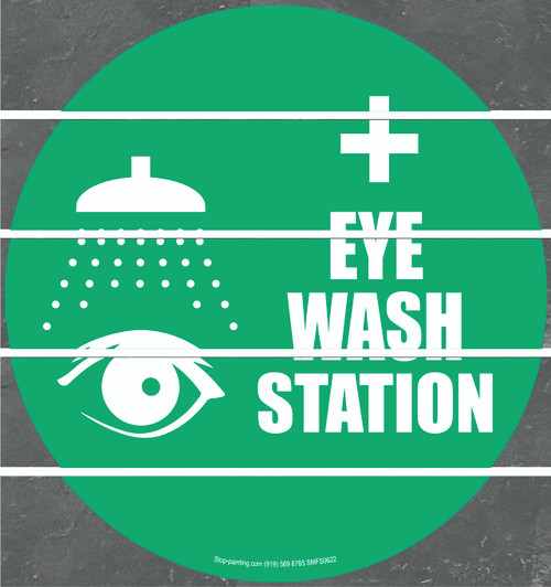 Our Eyewash Station floor sign is a safety must. Employees needing immediate first-aid requiring an eye wash have no extra minutes to spare looking for the eye wash station. Whether you are using 5S principles, Lean management organization or just need a single simple sign, our floor signs provide the visual tools you need. Available in Superior Mark, vinyl, rubber or mesh, and with a standard 17.5", 10" - Pack of 4 (Rubber Only) or 22" diameter, the vibrant colors and clear visual label message of our Eyewash Station location sign can help increase safety and productivity. Use this eye-catching floor sign to visually communicate with your employees, leading to improved warehouse and workplace safety and efficiency.