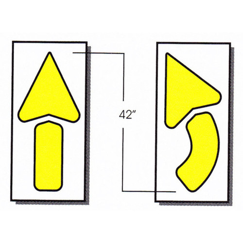 There's a straight tail, curved tail and triangular arrowhead. The painted arrows produced by these arrow stencils measure 42 inches long, with a 20 inch wide head and a 12 inch wide tail. The stencils are made from polyethylene plastic in either 1/16-inch thick or 1/8-inch thick, and these stencils can be used many times.