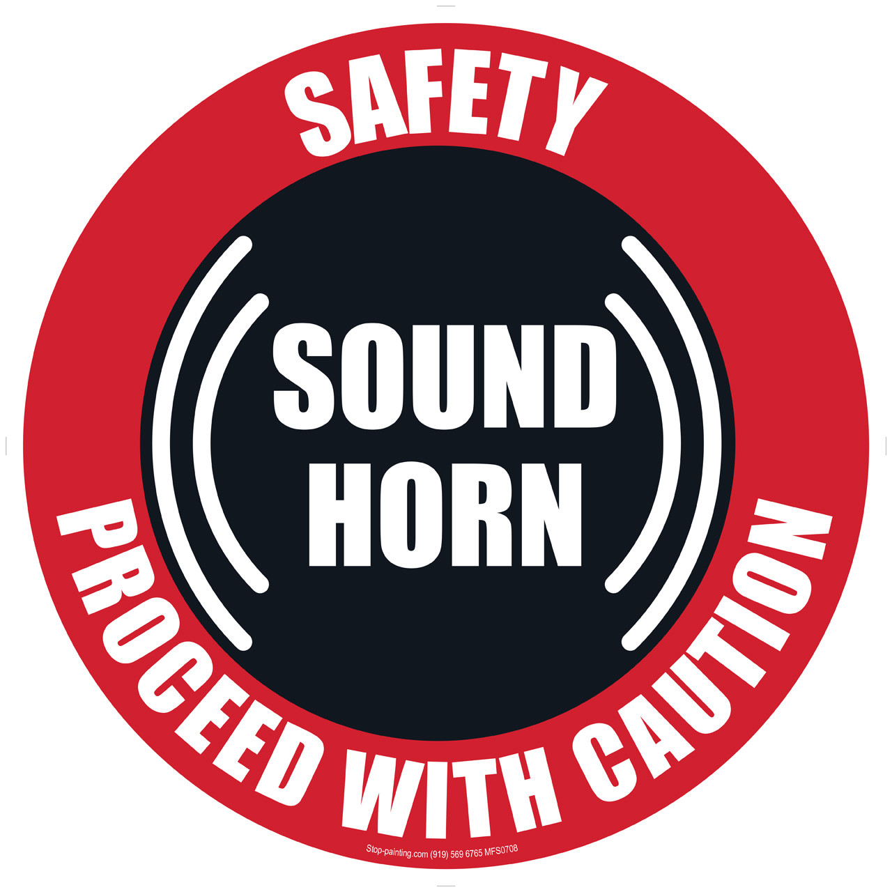 Our durable and industrial-grade floor signs are available in three materials and two different sizes. Choose from 17.5” or 22” and Superior Mark, vinyl, rubber, or inlaid mesh. This floor sign has bold white text with black and red background that can be easily read at a glance. Prevent accidents in your busy warehouse with Safety Proceed With Caution-Sound Horn Floor Signs that will last as long as you need them.