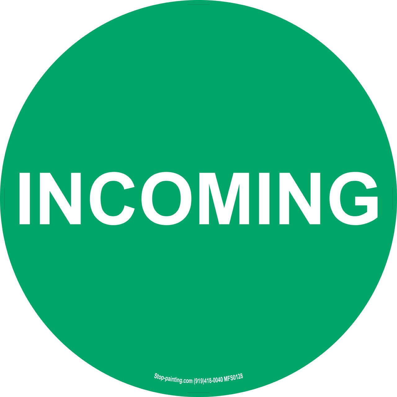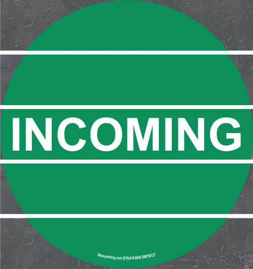 Assigning this floor sign exactly where you want it keeps your facility organized and efficient. Whether you are using 5S principles, Lean management organization or just need a single simple sign, our floor signs provide the visual tools you need. Available in Superior Mark, vinyl, rubber or mesh, and with a standard 17.5", 10" - Pack of 4 (Rubber Only)or 22" diameter, the vibrant colors and clear visual message of our Incoming floor sign will improve workplace efficiency. Great for Lean and 5S manufacturing floor marking needs.