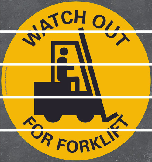 Forklifts move quickly an quietly and can sometimes be hard to hear coming in a busy warehouse. Prevent accidents with forklift safety signs warning your employees that forklifts are often in this area. Our Watch for Forklift sign is available in Superior Mark, vinyl, rubber, and inlaid mesh. You can also choose a yellow or grey background and 17.5” or 22” standard diameter size. Keep your employees safe with this durable sign featuring bold text and forklift graphic.