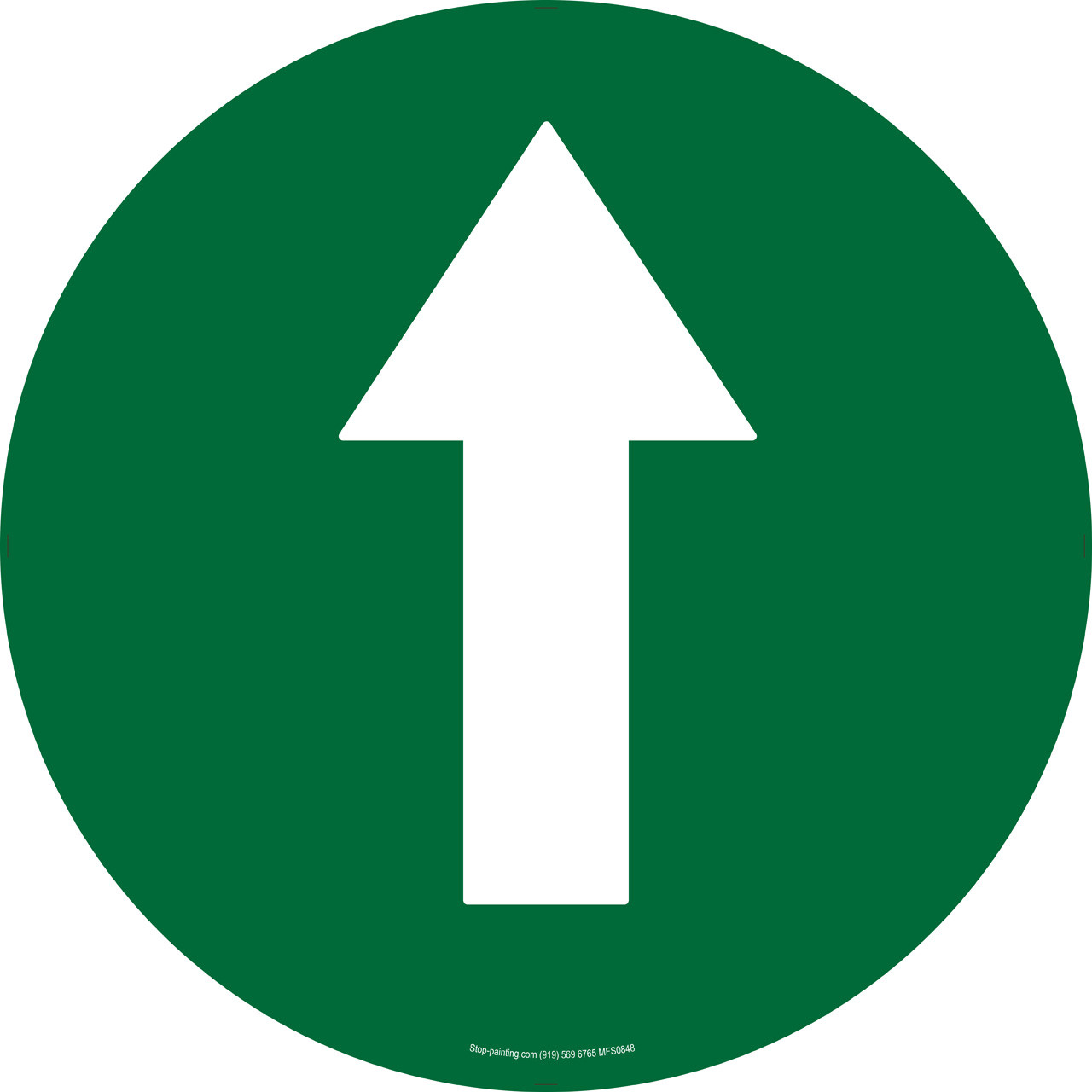Our green floor sign with a large white arrow is designed to withstand heavy traffic, even in a busy warehouse. Available in 4 materials and 2 sizes. Choose the size and material that best suits your needs. We have permanent and removable floor signs. Keep traffic flowing smoothly with a green directional arrow floor sign.