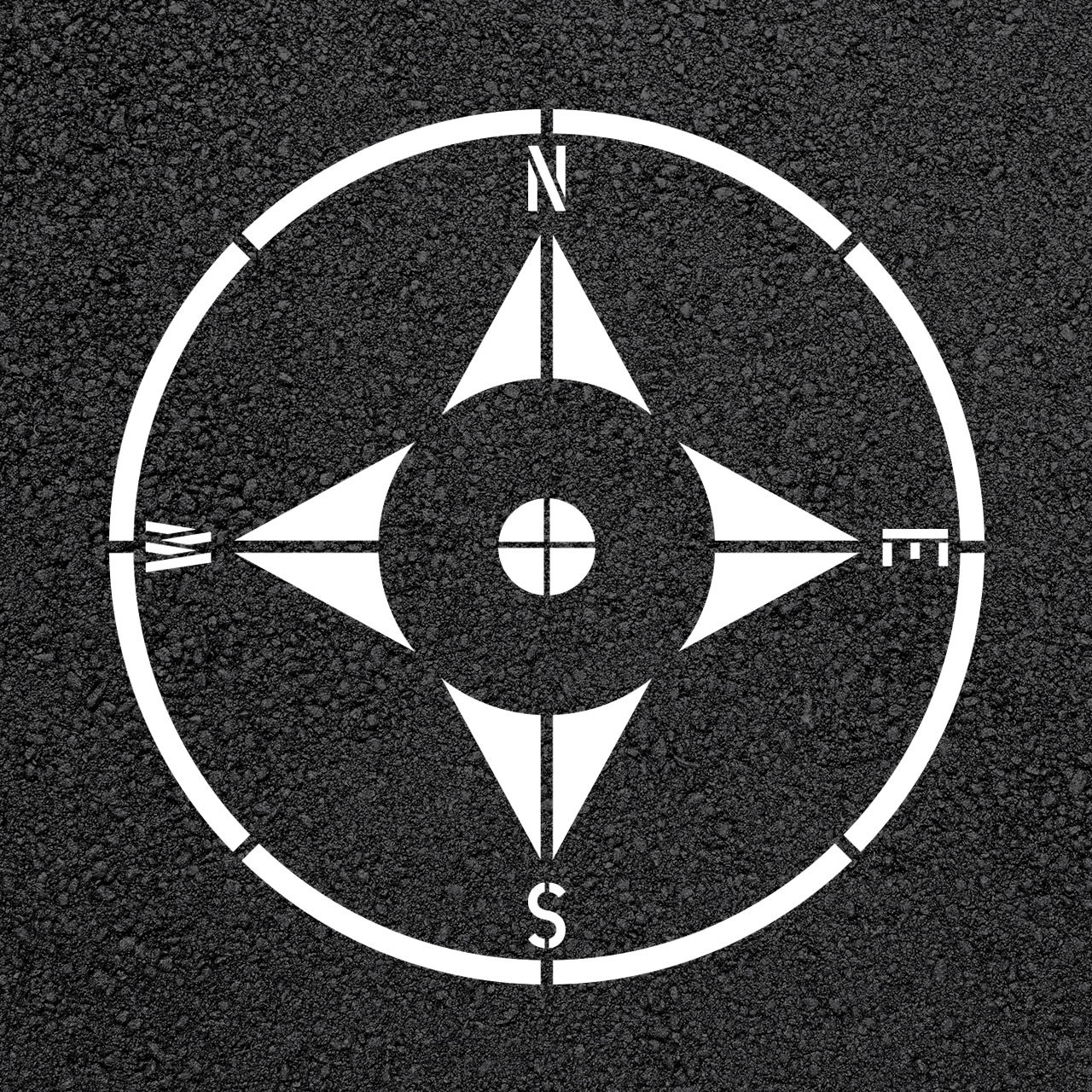 Great for daycares, city parks, schools and other environments, this durable playground compass stencil creates a larger-than-life directional mural for kids to explore. Seven sizes ranging from 18 inches to 16 feet tall allow for a breadth of configuring options. Choose the large-scale compass stencil as the centerpiece of your recreation area or add a smaller one to your playground's ship or car theme. Our playground stencils are made from durable polyethylene material that allows them to be reused multiple times on pavement, concrete, grass or other surfaces. Choose a brightly colored aerosol paint and apply with a marking gun to bring even more fun to this stencil.
