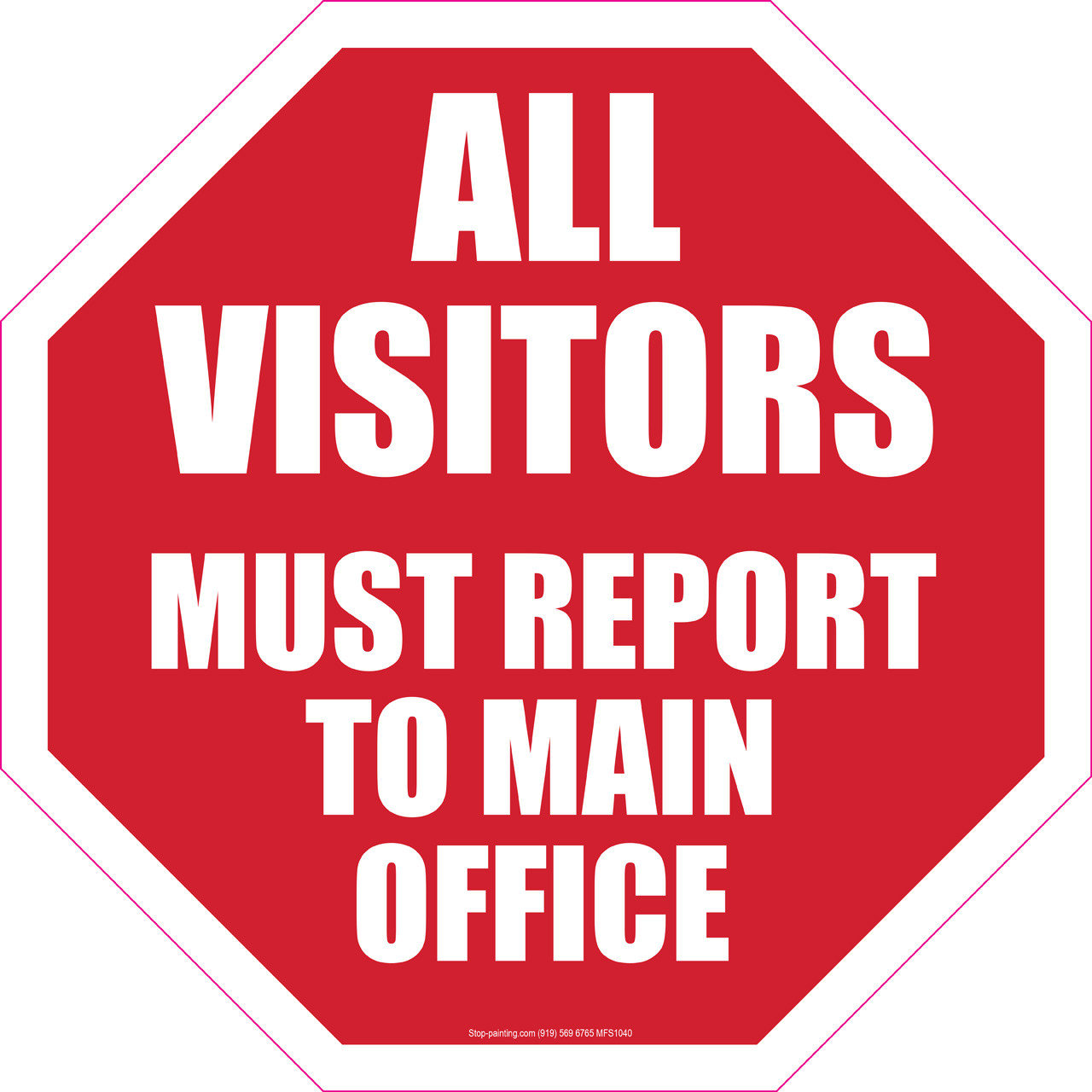 Ensure secure and organized facility access with the All Visitors Must Report to Main Office Floor Sign. This highly visible, peel-and-stick floor sign is designed to provide clear guidance for all visitors, helping you comply with safety protocols and streamline front office check-ins.