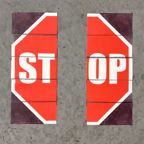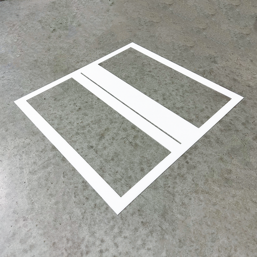 Template for aligning and positioning The Superior Mark® 10 piece split stop sign kit.