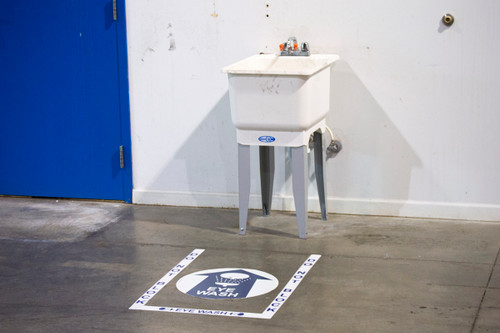 Make your work facility safer and more efficient by using Lean and 5S visual cues. Eye wash stations are critical equipment in factories and industrial warehouses that use potentially dangerous chemicals or that have flying dust and other debris. To keep workers safe and comply with OSHA safety regulations, we have our Eye Wash Station floor tape marking sign and border kit. The rubber or vinyl floor sign and 3-piece printed border clearly mark the location of the eye wash station and it also keeps the area unobstructed so that people can access it quickly in the event of an emergency.