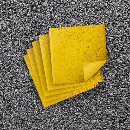 - Superior pressure-sensitive adhesive bonds permanently to road surface through hot and cold weather conditions.