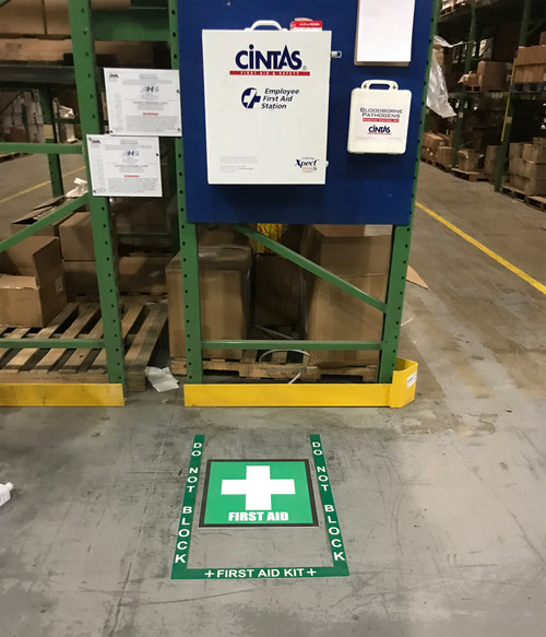 Use Lean and 5S floor markers to clearly mark where first aid kit equipment is located.