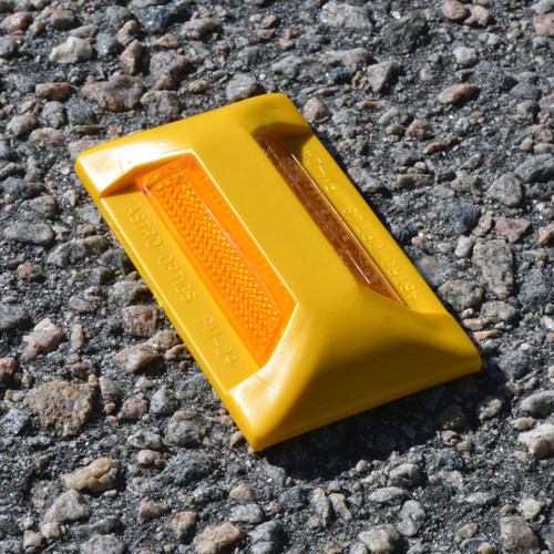 This road reflector, also called a raised pavement marker, features 1.3 square inches (8.4 sq. cm) of reflective area per side. Designed for use in construction zones and as a permanent Edge Line Marker.