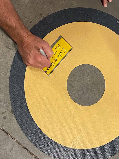 Our simple, one-piece sign is easily installed indoors or outdoors within minutes. It will withstand military traffic as well as UV light and hot and cold weather conditions. If you're tired of painting, you have found a winning alternative. The sign also features a small cut-out area for using sections of our Superior Mark® Floor Marking Tape to use for writing in Inspection Dates.